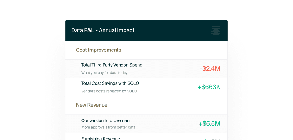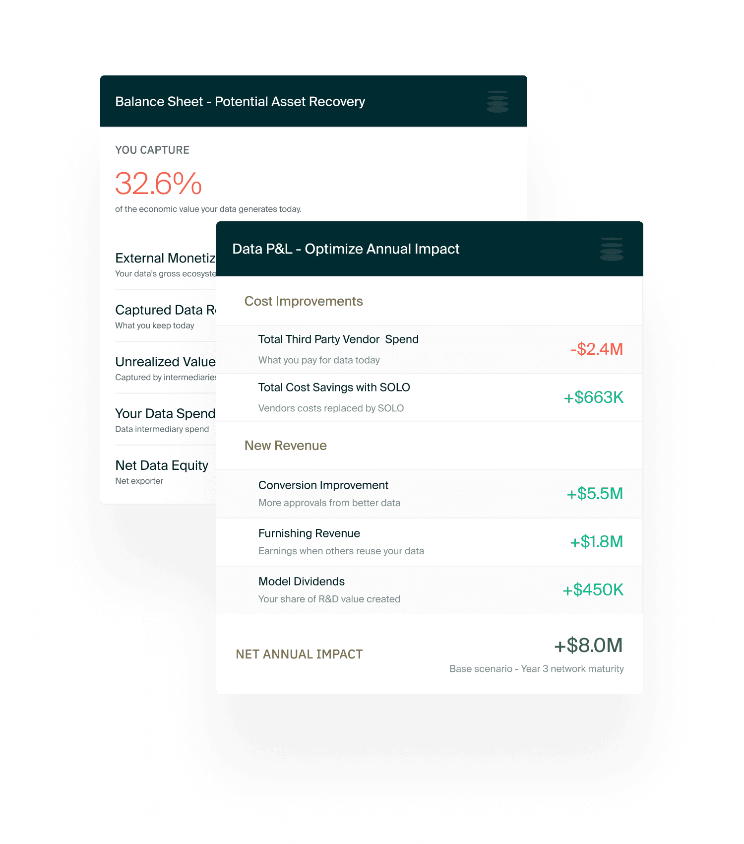 SOLO’s ROI Model treats data as an asset with values tied to outcomes. Data shifts from operating cost to revenue opportunity.